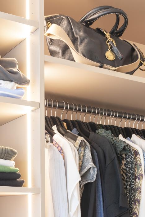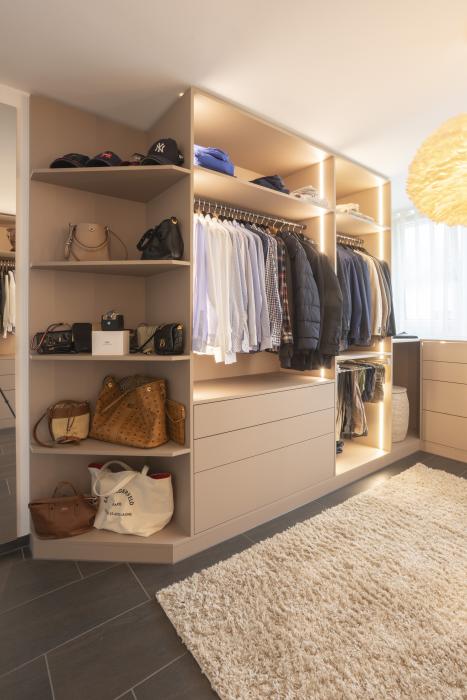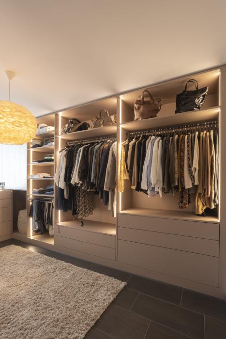 Umbau Einfamilienhaus: offenes Ankleidezimmer / begehbarer Kleiderschrank