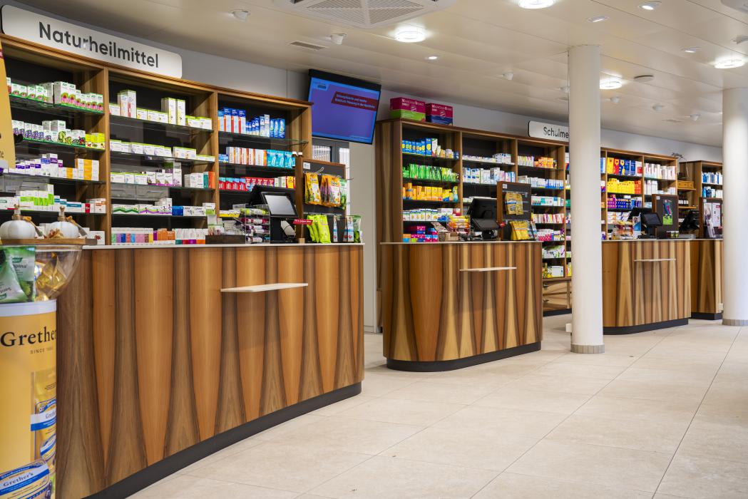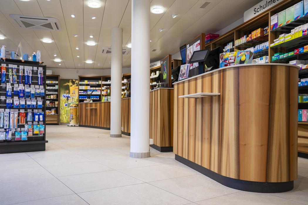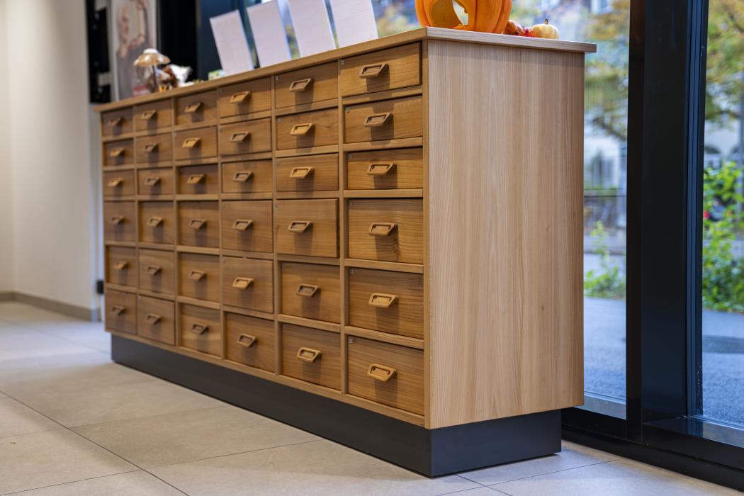 Apotheke, furniert mit europäischem Nussbaum
