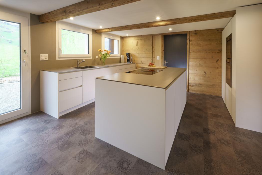 Einbauküche in altem Bauernhaus Moser + Hungerbühler AG St. Gallerstrasse 116a 9200 Gossau SG 071 385 11 11 info@mh-schreinerei.ch www.mh-schreinerei.ch Al profilo aziendale Aree di lavoro Cucine Pianificazione Ristrutturazioni / Restauri