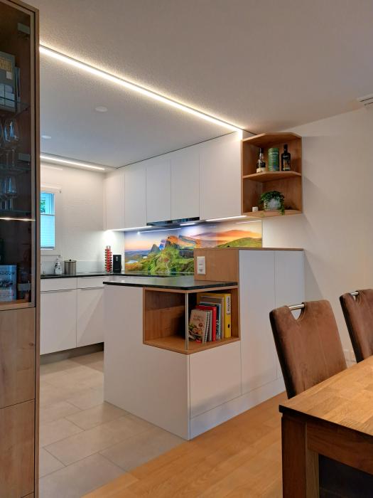 Küche mit Glasrückwand