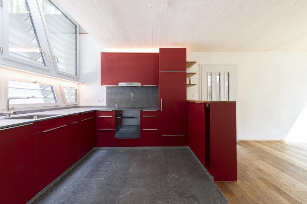 Rote Massivholzküche mit Eichenelementen Oggetto di costruzione: 2025 holzx GmbH Hauptstrasse 44 4938 Rohrbach 062 965 09 59 info@holzx-schreiner.ch www.holzx-schreiner.ch Al profilo aziendale Aree di lavoro Cucine