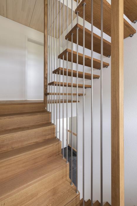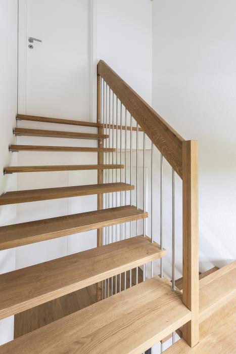 Treppe aus massiver Eiche an feinen Chromstahlröhrchen Oggetto di costruzione: 2023 holzx GmbH Hauptstrasse 44 4938 Rohrbach 062 965 09 59 info@holzx-schreiner.ch www.holzx-schreiner.ch Al profilo aziendale Aree di lavoro Scale