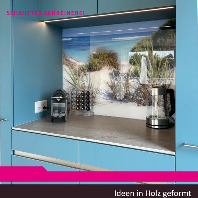Teeküche mit Ferienfoto als Rückwand